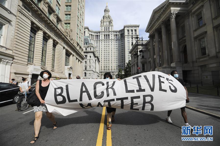 6月19日,游行队伍走在美国纽约街头。 新华社记者 王迎 摄