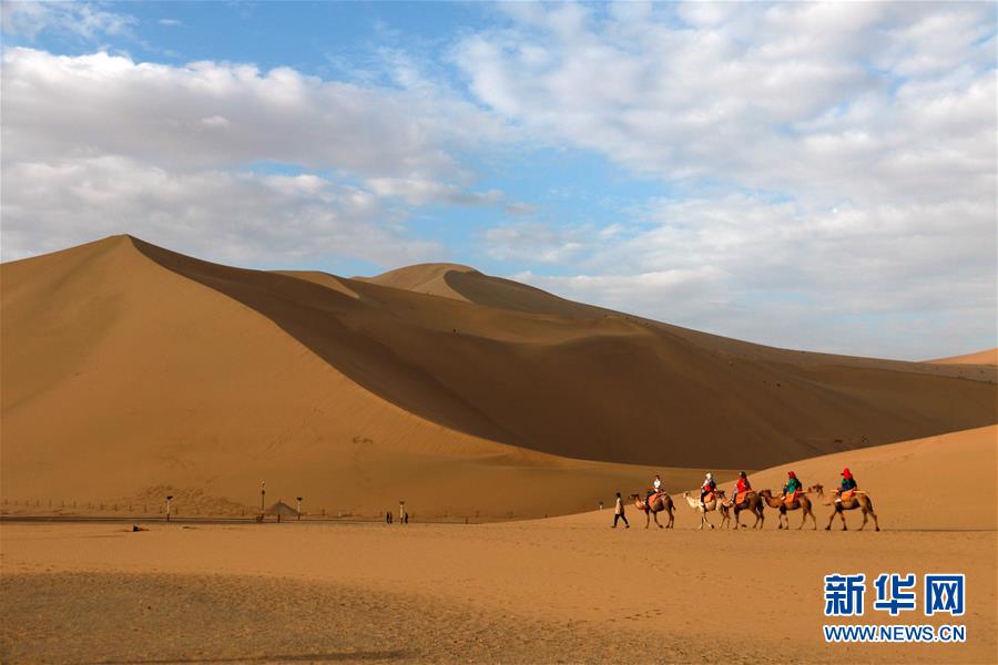 6月27日,游客在甘肃省敦煌市鸣沙山月牙泉景区游览。 据文化和旅游部公布的端午小长假旅游统计数据,6月25至27日,全国累计接待国内游客4880.9万人次,累计实现国内旅游收入122.8亿元。 新华社发(张晓亮 摄)