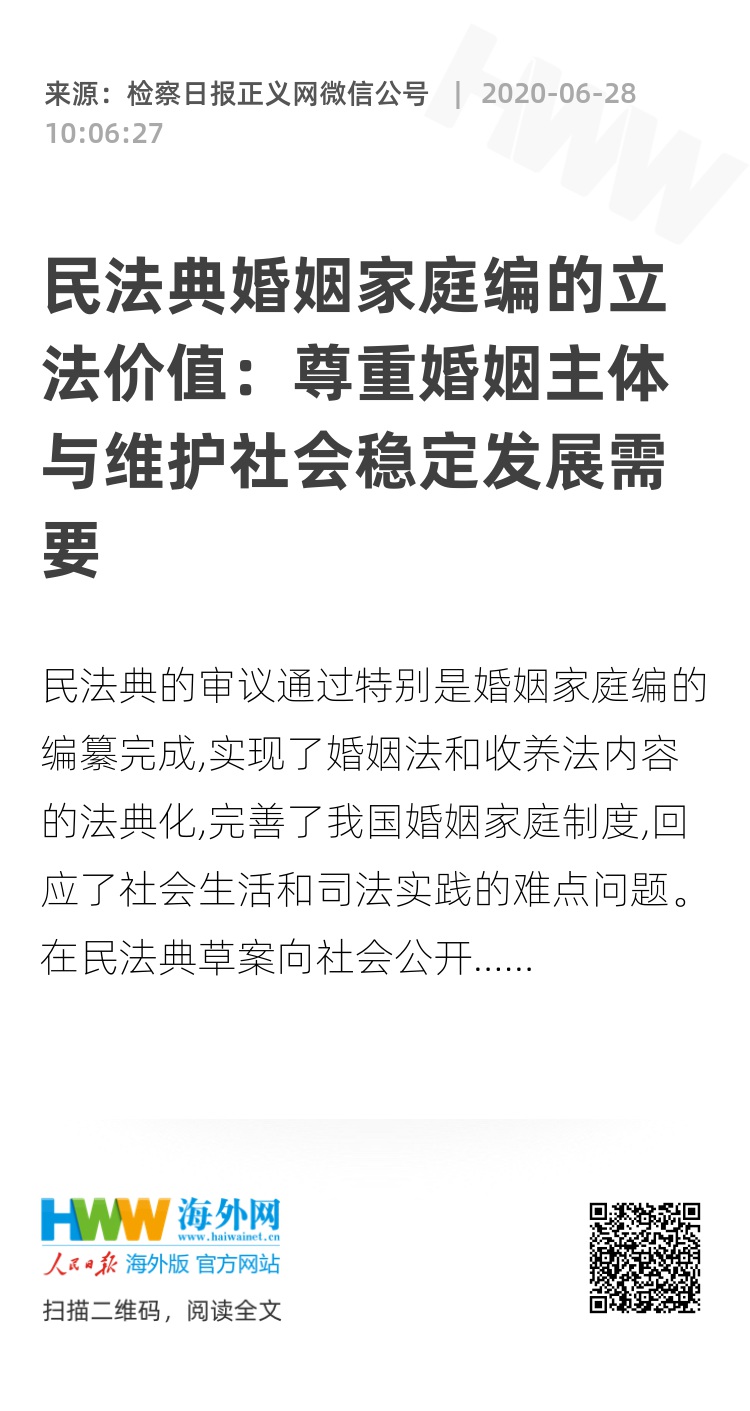 民法典的审议通过特别是婚姻家庭编的编纂完成,实现了婚姻法和收养法内容的法典化,完善了我国婚姻家庭制度,回应了社会生活和司法实践的难点问题。在民法典草案向社会公开征求意见的过程中,婚姻家庭编集中了最多的修改意见,这其中包括民法典第1077条所确立的“离婚冷静期制度”,回应这些热点问题,无法回避婚姻家庭立法的价值阐释。