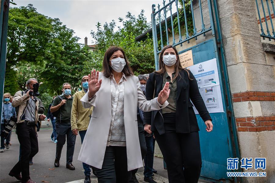 6月28日,在法国巴黎15区的一家投票站,现任巴黎市长伊达尔戈(中)投票后离开。 当日,法国举行市镇选举第二轮投票。受新冠肺炎疫情影响,本轮投票由原定的3月22日推迟至6月28日举行。 新华社发(奥雷利安·莫里萨尔摄)