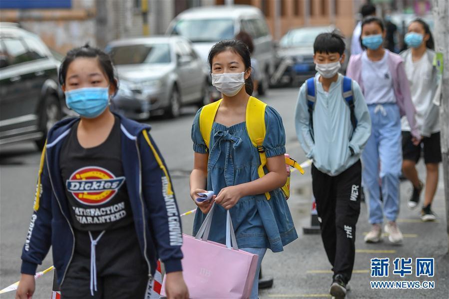 6月29日,吉林省吉林市城区初中一、二年级,小学四至六年级复课。吉林市教育局要求各学校组织学生错峰入校、放学、就餐和参加体育活动,确保校园疫情防控安全。 新华社记者 张楠 摄