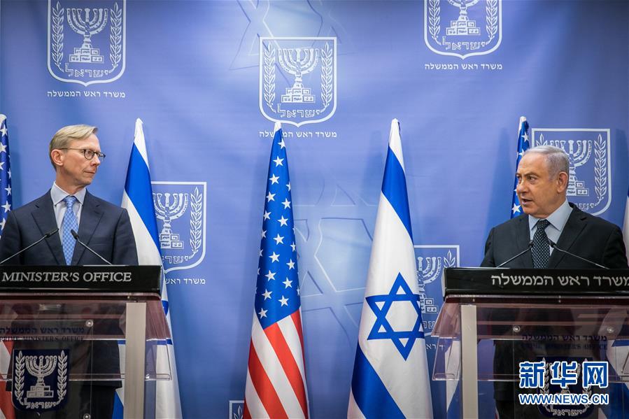 以色列总理内塔尼亚胡30日在耶路撒冷与到访的美国伊朗问题特别代表布赖恩·胡克举行会谈,双方呼吁联合国延长对伊朗的武器禁运。 新华社/基尼图片社
