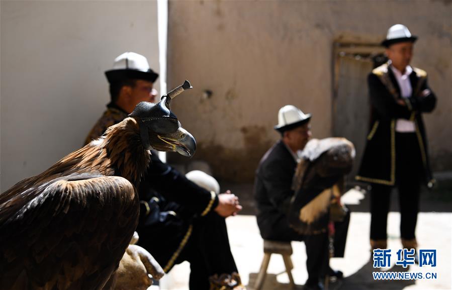6月29日,库尔马西·胡特曼的徒弟在库尔马西家中交流驯鹰技艺。 新华社记者 宋彦桦 摄