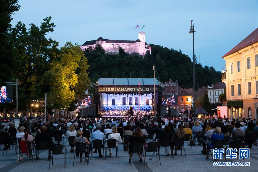 7月1日,观众在斯洛文尼亚首都卢布尔雅那观看艺术节开幕式演出。 当日,第68届卢布尔雅那艺术节拉开帷幕。 新华社记者 彭立军 摄
