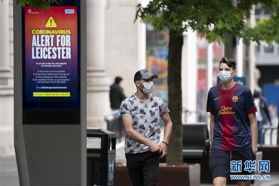 英国近期已开始逐步放宽新冠疫情防控措施,但英国卫生大臣马修·汉考克6月29日表示,过去一周里,莱斯特的确诊病例数占到全国的约10%,为此,政府决定从6月30日开始暂停当地非必需零售业店铺经营,近期当地学校大部分学生也会停课,酒吧、餐厅等也不会像英国其他地方那样按计划重新开放。 新华社发(乔恩·休珀摄)