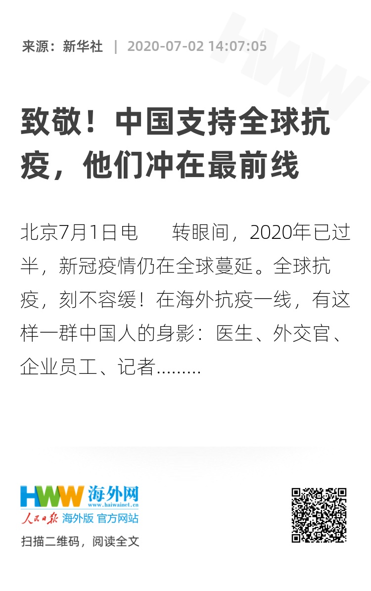 在全球经济遭新冠疫情重创的当下,中国经济为稳定世界经济注入信心和动力,中国企业也积极助力海外复产复工。很多中国劳动者正在海外抗疫和复产的双重战线上忙碌着。