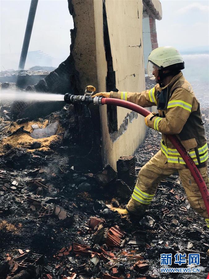 7月3日,消防员在土耳其萨卡里亚省的烟花厂仓库爆炸现场工作。 新华社发