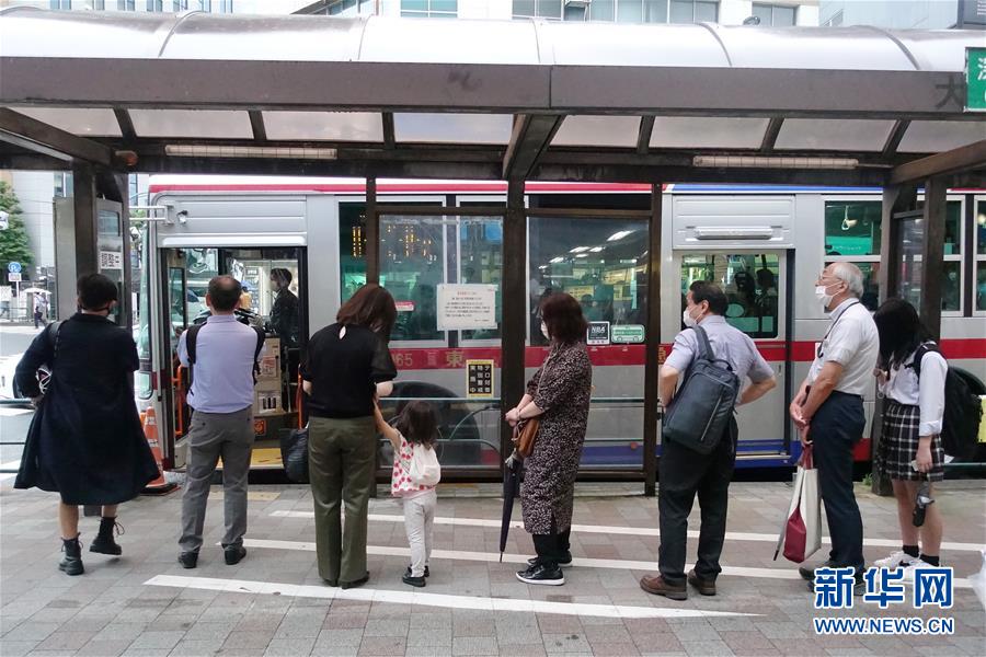 7月3日,人们在日本东京戴口罩等候公共汽车。新华社记者杜潇逸摄
