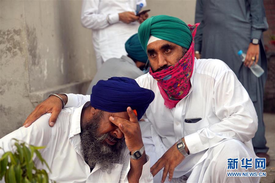 7月3日,在巴基斯坦东部旁遮普省谢赫布拉地区,人们在医院外难掩悲伤。 新华社发