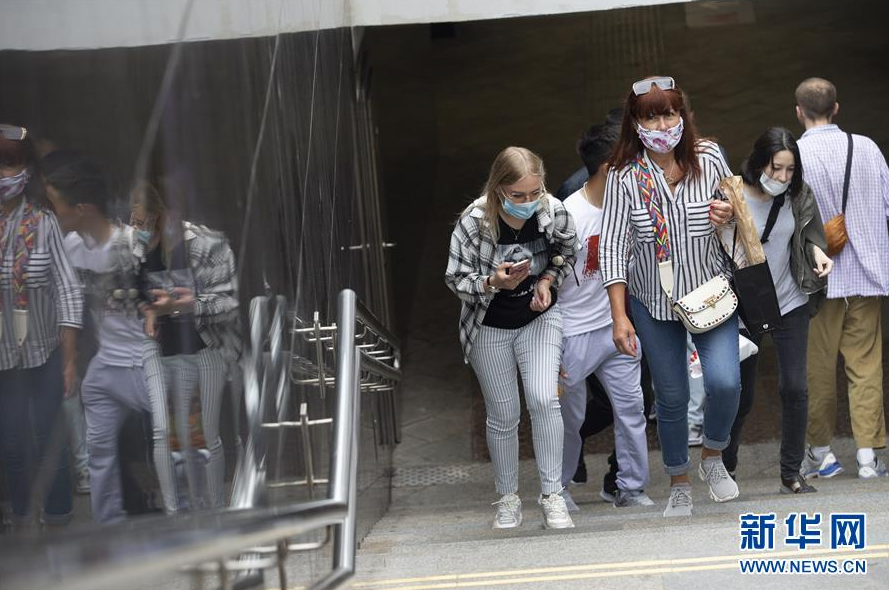 7月4日,戴着口罩的人们通过俄罗斯莫斯科一处过街通道。 新华社发(亚历山大摄)