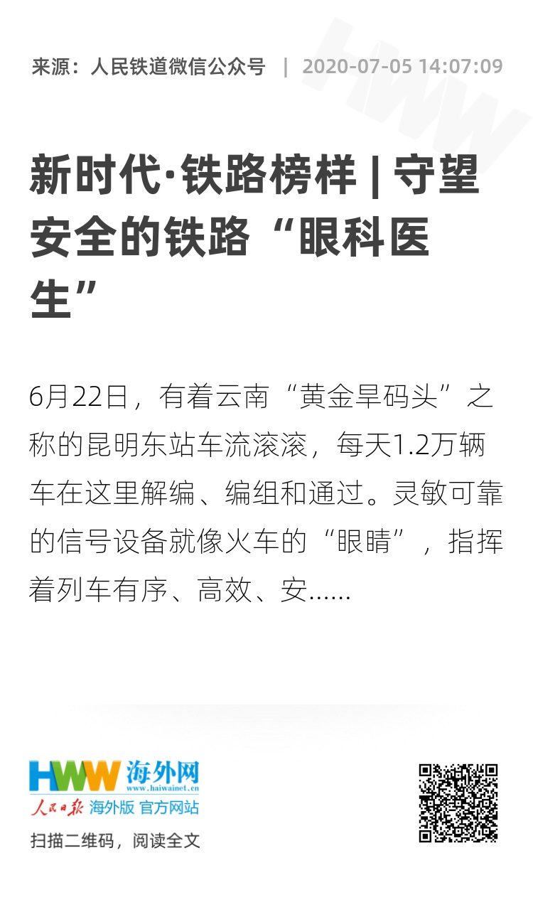 在闪闪发亮的信号灯后,有一群默默奉献的信号人。中国铁路昆明局集团有限公司昆明电务段驼峰信号车间下行制动化工区信号工陈建发,就是这样一名信号工。他像眼科医生一样,守护着火车的“眼睛”。
