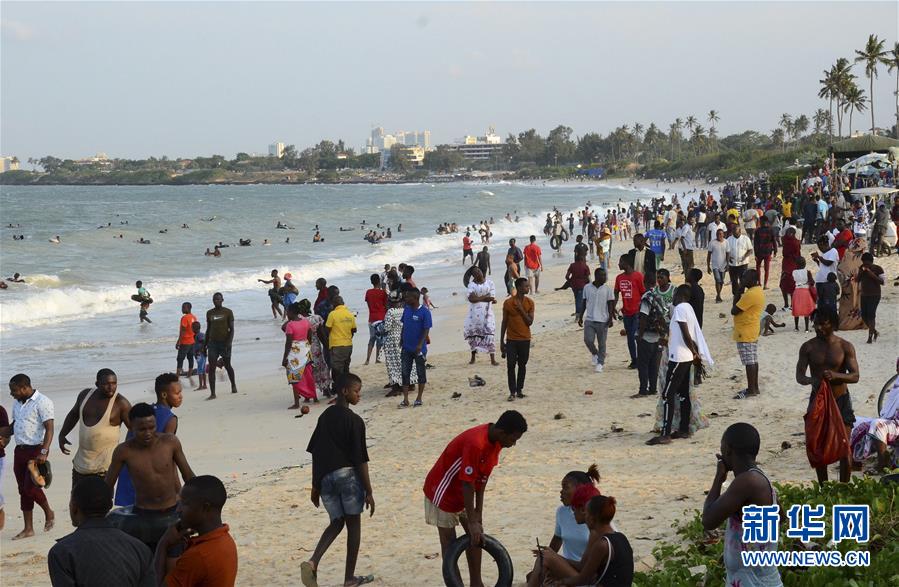 7月5日,人们在坦桑尼亚达累斯萨拉姆的一处海滩上休闲。 坦桑尼亚政府近期取消了对社会经济活动的一系列限制措施,并鼓励民众积极复工复产。 新华社发