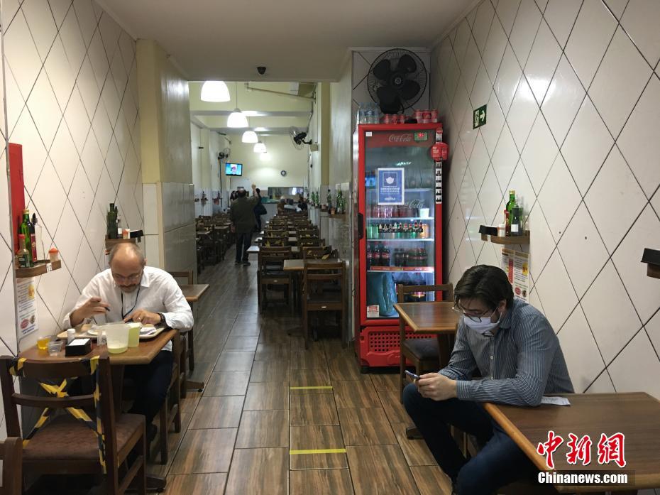 当地时间7月6日,在巴西圣保罗,一家当地餐厅开门营业。中新社记者 莫成雄 摄