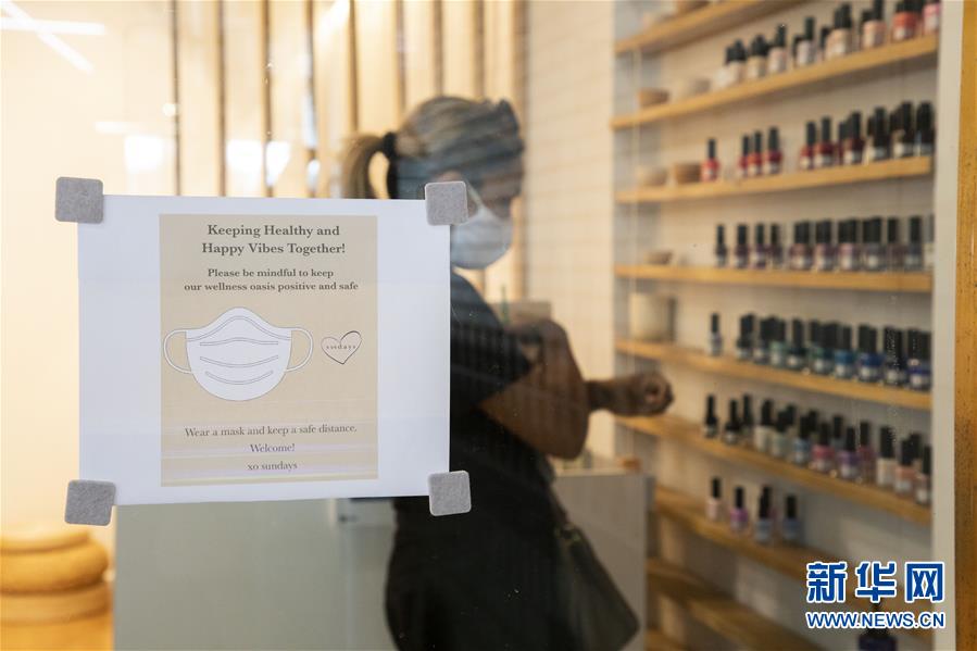 7月6日,纽约进入重启第三阶段,美甲店、按摩店等个人护理业在经历近4个月的停业后被允许重新开放。因防疫需要,原本应在第三阶段开放的餐饮业室内就餐仍处于暂停状态。 新华社记者 王迎 摄