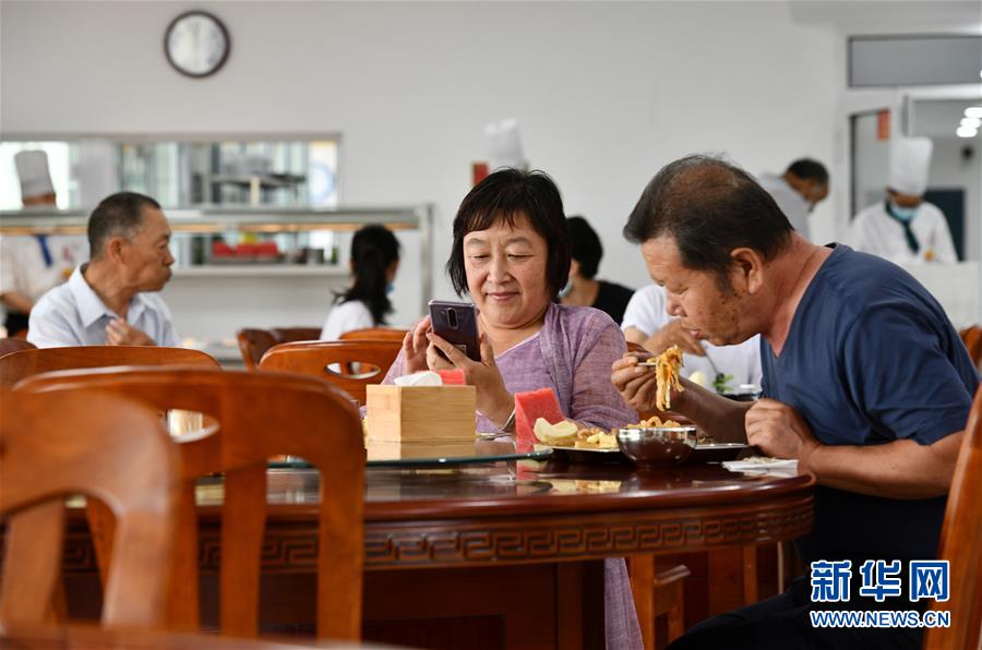 7月7日,老人在付村康养中心(老人家食堂)用餐。 新华社记者 李然 摄