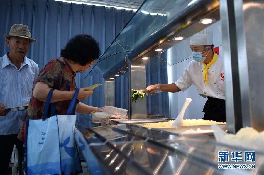 7月7日,老人在付村康养中心(老人家食堂)取餐。 新华社记者 李然 摄