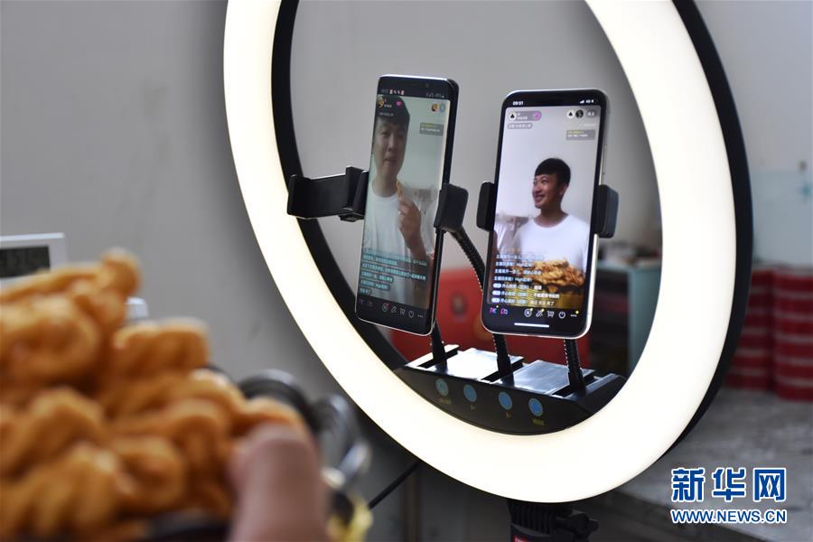 7月8日,张亚博、张亚钊兄弟在直播带货。 新华社记者 韩朝阳 摄