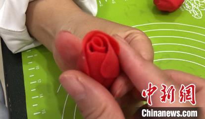 韩彤彤用面捏制玫瑰花。 邢璐 摄