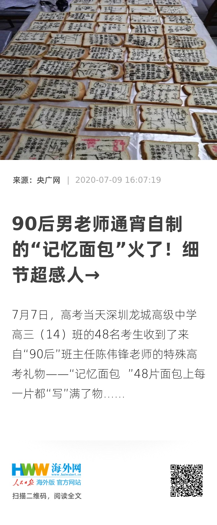 陈伟锋说:“其实制作高考‘记忆面包’的过程,我在班级家长群里也进行了播报,在制作的过程中,收到了很多家长的支持和祝福,这些面包融入了全班家长的爱和期待!”