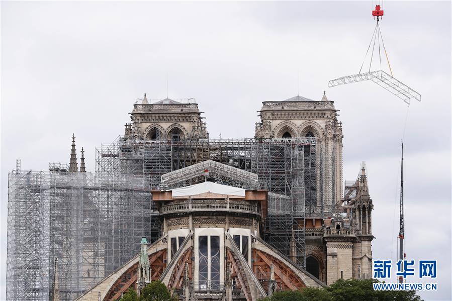 法国新任文化部长罗斯利娜·巴舍洛7月9日接受法国公共电台采访时表示,在修复被大火烧毁的巴黎圣母院问题上已有“广泛共识”,即塔尖部分要“按原样”重建。2019年4月15日,圣母院的屋顶和塔尖在大火中被烧毁。巴黎圣母院正式修复工程预计从2021年开始。 这是6月9日在法国巴黎拍摄的巴黎圣母院。 新华社记者 高静 摄