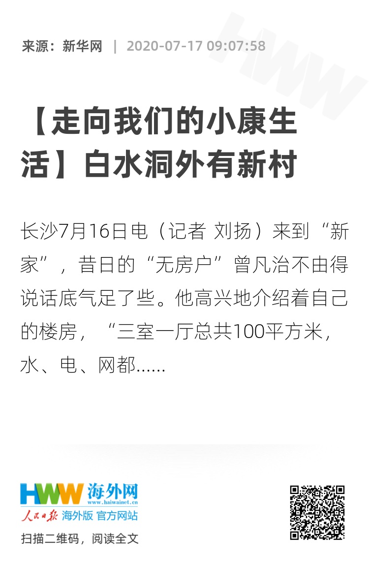 与曾凡治情况类似,2018年以来,来自新邵县严塘镇白水和龙脊两个重点贫困村的高寒山区、地质灾害区、生态脆弱区的126户409名建档立卡贫困人口落户白水洞村。白水洞村党委第一书记罗宇晟说,通过易地扶贫搬迁解决了深山贫困户生产生活面临的不利条件,并对原居住区进行了拆旧复垦。同时因地制宜发展农业产业、打造研学基地,为贫困户提供分红和就业保障,以实现稳定脱贫的目标。