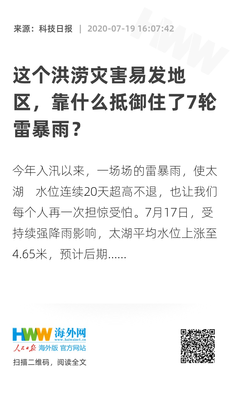 今年入汛以来,一场场的雷暴雨,使太湖 水位连续20天超高不退,也让我们每个人再一次担惊受怕。