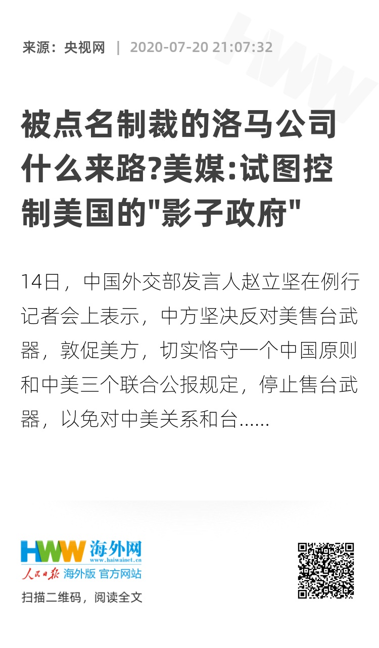 △《今日美国报》报道:洛克希德·马丁、波音等20家从战争中获利最多的公司