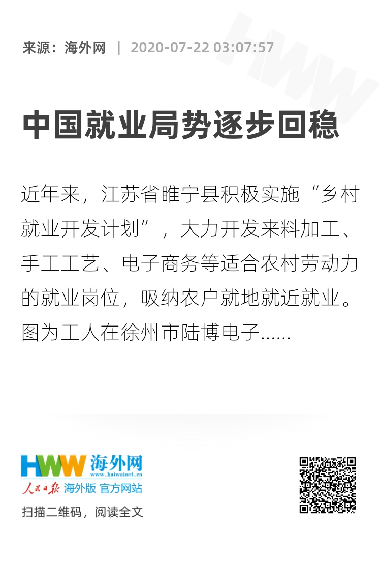 “上半年整体就业走势前低后稳。”人社部就业促进司司长张莹表示,就业形势逐步回稳,得益于疫情的有效控制、复工复产的有序推进、经济的企稳回升。人社部门也立足职责,从稳岗位、保重点、促匹配、兜底线等方面精准施策。