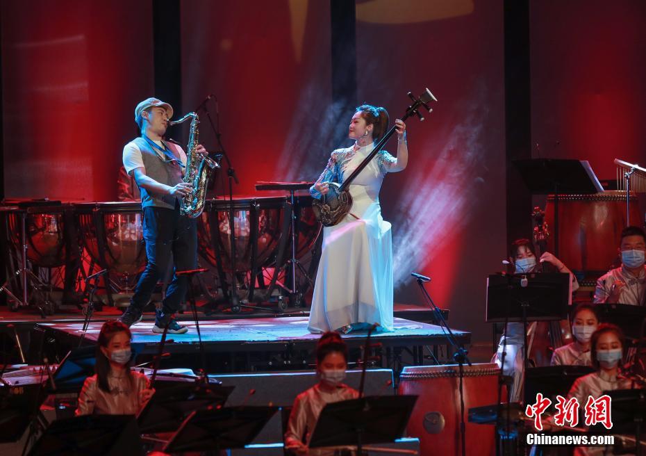 7月24日晚,北京民族乐团在全国地方戏演出中心上演《国·潮》弹幕音乐会。这也是北京演出市场恢复开放后迎来的首场演出。中新社记者 贾天勇 摄