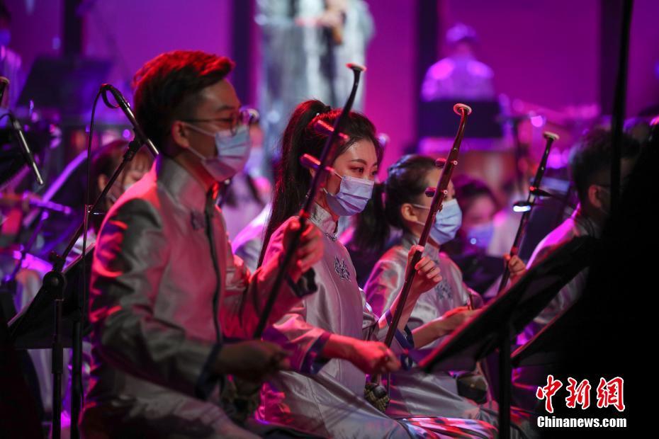 7月24日晚,北京民族乐团在全国地方戏演出中心上演《国·潮》弹幕音乐会。这也是北京演出市场恢复开放后迎来的首场演出。中新社记者 贾天勇 摄