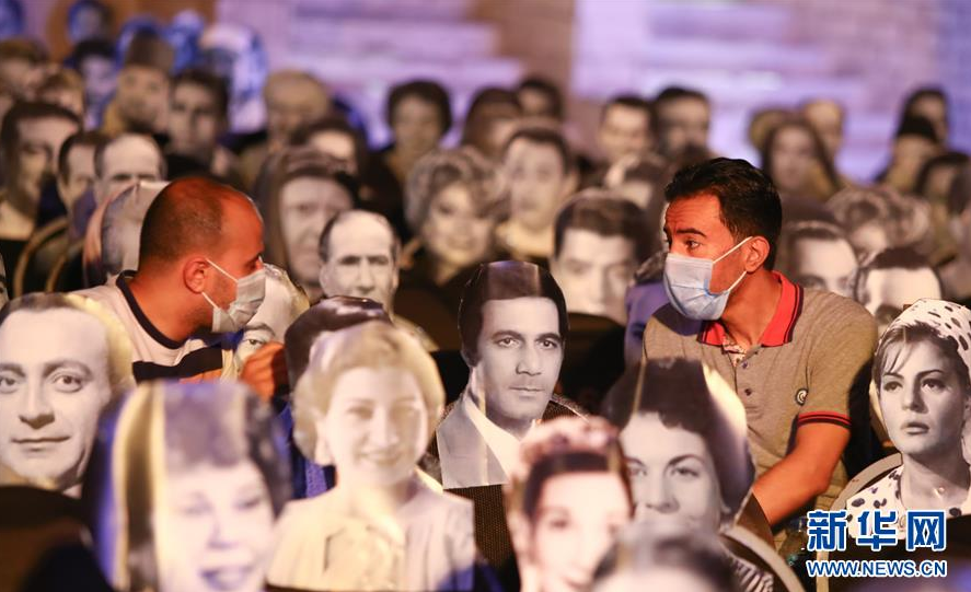 7月25日,在埃及首都开罗的一家剧院,人们坐在名人照片之间交谈。 埃及开罗的一家剧院在座椅上摆放了埃及早期歌星和影星的照片,帮助人们在观看演出时保持社交距离。埃及卫生部25日晚说,埃及境内新增新冠确诊病例511例,累计确诊91583例。 新华社发(艾哈迈德·戈马摄)