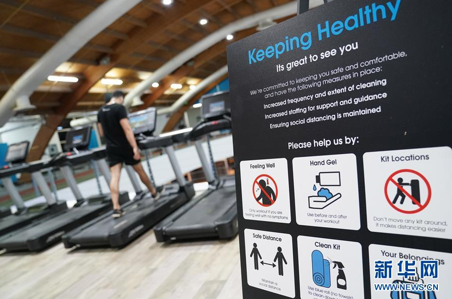 7月25日,在英国曼彻斯特,一名男子在健身中心健身。 按英国政府计划,从7月25日开始,英格兰地区室内健身场馆、游泳池等重新开放。 新华社发(乔恩·休珀摄)