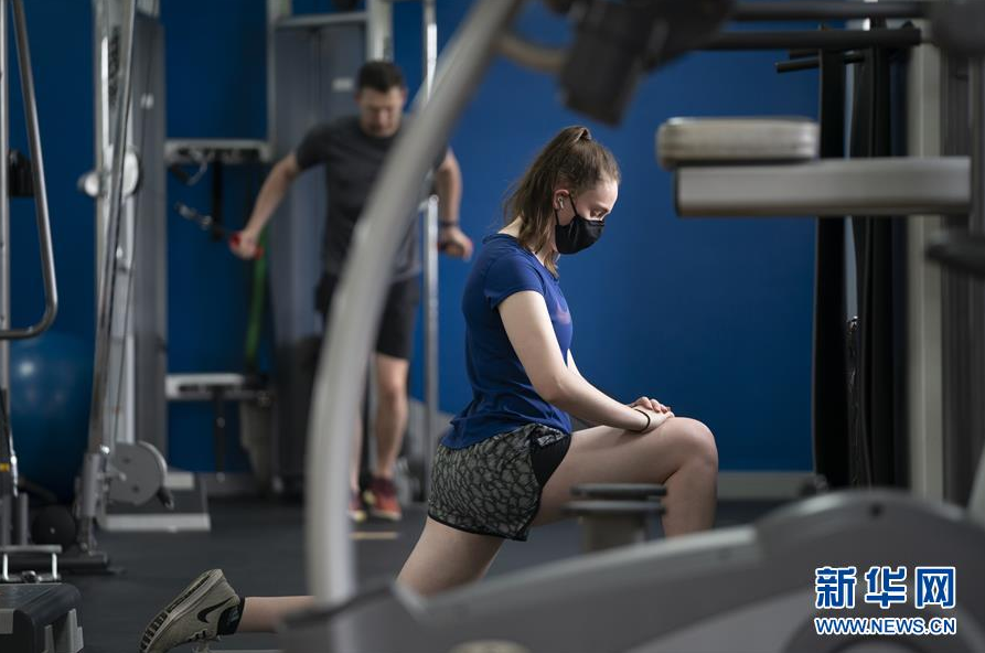 7月25日,在英国曼彻斯特,一名戴口罩的女子在健身中心健身。 按英国政府计划,从7月25日开始,英格兰地区室内健身场馆、游泳池等重新开放。 新华社发(乔恩·休珀摄)