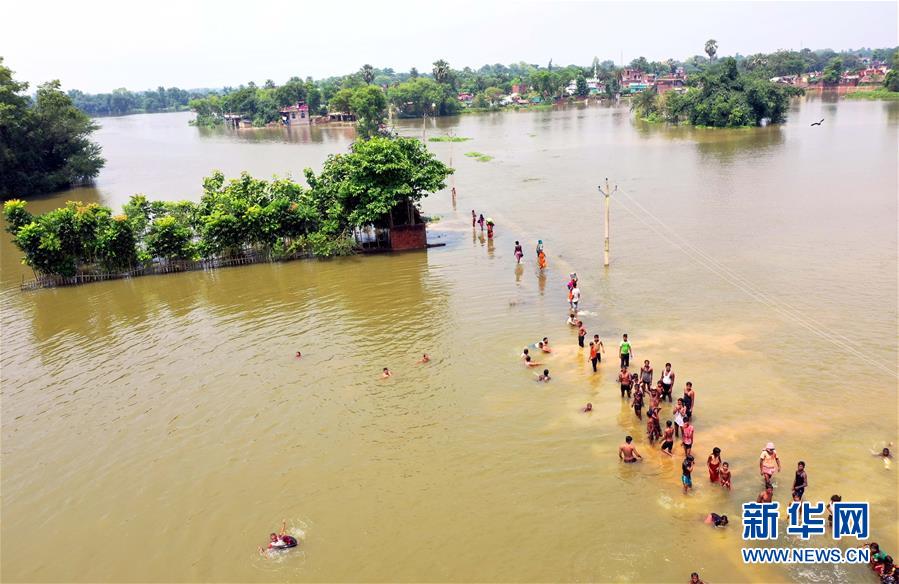 这是7月26日在印度比哈尔邦达尔彭加航拍的一处受灾区域。 印度东北部比哈尔邦灾害管理部门26日发表公报说,该邦近日遭洪灾袭击,造成至少10人死亡、近150万人受灾。 新华社发