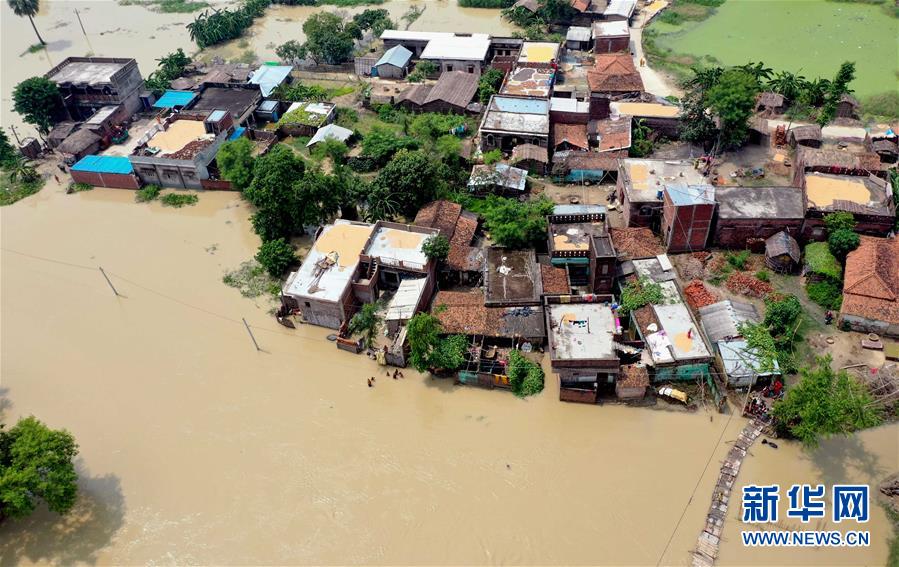 这是7月26日在印度比哈尔邦达尔彭加航拍的一处受灾区域。 印度东北部比哈尔邦灾害管理部门26日发表公报说,该邦近日遭洪灾袭击,造成至少10人死亡、近150万人受灾。 新华社发