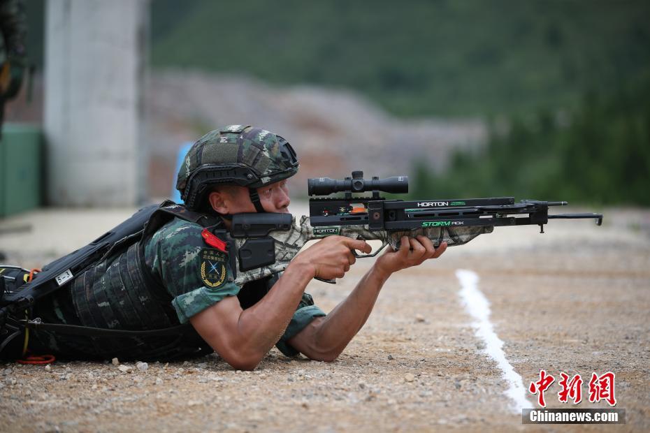 参赛队员在进行“弓弩对不动目标射击”课目。中新社记者 瞿宏伦 摄