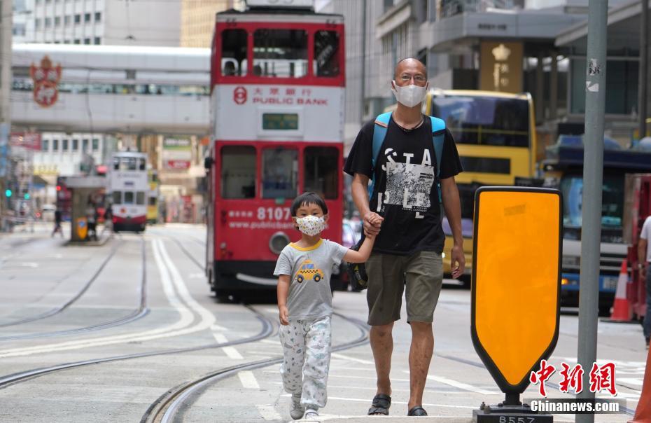 香港特区政府政务司司长张建宗7月27日表示,当日行政会议举行特别会议,批准4项防疫措施,有关措施将在7月29日零时零分生效,有效期为7天。新措施规定:在公众地方进行群组聚集的人数限制从4人进一步收紧到2人;任何人身处公众地方,不论室内还是室外,一定要戴口罩等。图为中环街头一老一小戴口罩出行。 中新社记者 张炜 摄
