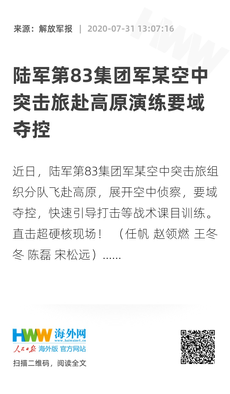 近日,陆军第83集团军某空中突击旅组织分队飞赴高原,展开空中侦察,要域夺控,快速引导打击等战术课目训练。直击超硬核现场! (任帆 赵领燃 王冬冬 陈磊 宋松远)