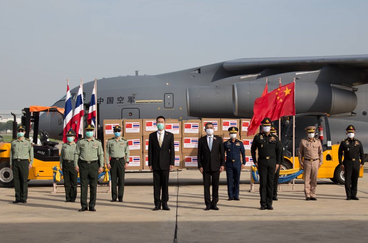 中泰一家亲延绵千年,两国人民历来患难与共、守望相助。在中国抗击新冠肺炎疫情初期,泰国国王向习近平主席第一时间发出慰问信,泰国各界纷纷为中国加油并向中国提供了紧急医疗物资援助。泰国出现疫情后,中方同样伸出援手。中国政府先后两次向泰国政府提供抗疫物资援助,共计医用外科口罩140万个、N95医用口罩8万个、医用防护服7.2万件、检测试剂17万份。中国人民解放军派遣空军运20运输机紧急向泰国军队提供呼吸机、心电监护仪、测温议、核酸检测试剂、医用口罩、防护服等援助物资,总价值约3000万泰铢。两国政府和军队有关部门还多次举行抗疫经验交流网络视频会议,中泰两军还将召开扶贫经验交流会,为国家发展和人民幸福继续做出应有努力。今年是中泰建交45周年,中泰两国将一如继往相互支持、共克时艰,用实际行动诠释“一家亲”的深厚情谊。