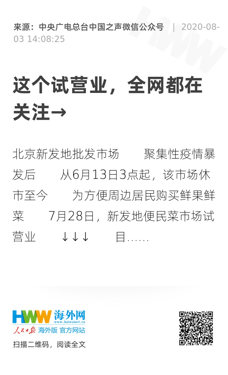 “这个菜市场我们的初衷就是便宜、便民和新鲜。”丰台区相关负责人表示,未来,新发地批发市场将严格落实“批零分开、干湿分离、生熟分开”要求,全面优化升级市场的防疫生态、健康生态和产业生态。