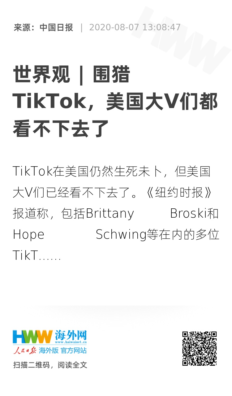 31851480,.世界观 | 围猎TikTok,美国大V们都看不下去了,.2020-08-07 13:53:47,.204306,.秦雅楠
