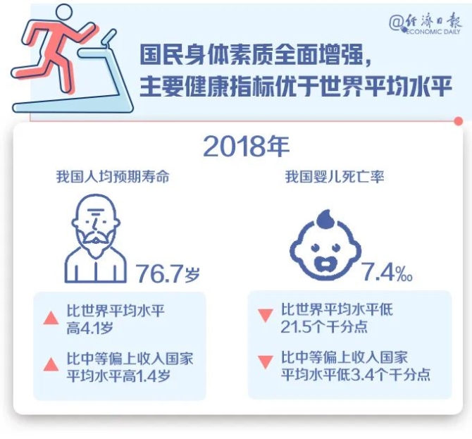 随着健康中国战略加快实施,我国国民身体素质显著增强,主要健康指标优于世界平均水平。