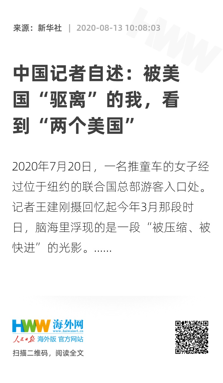 在我回国之后,美国仍然变本加厉。今年5月,美方宣布将所有中国驻美记者工作签证的停留期限缩短为90天,让中国记者在美国的工作面临极大不确定性。