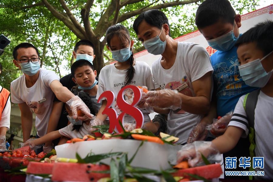 8月16日,参加“新星”38岁生日会的大熊猫“粉丝”在协助动物园工作人员制作水果生日蛋糕。 当日,世界现存最年长圈养大熊猫“新星”迎来38岁生日,重庆动物园为“老寿星”举行了生日会。“新星”的年龄相当于人类的110至150岁,目前身体状况良好。 大熊猫“新星”1982年出生于四川宝兴县野外,1983年来到重庆动物园。 新华社记者 唐奕 摄