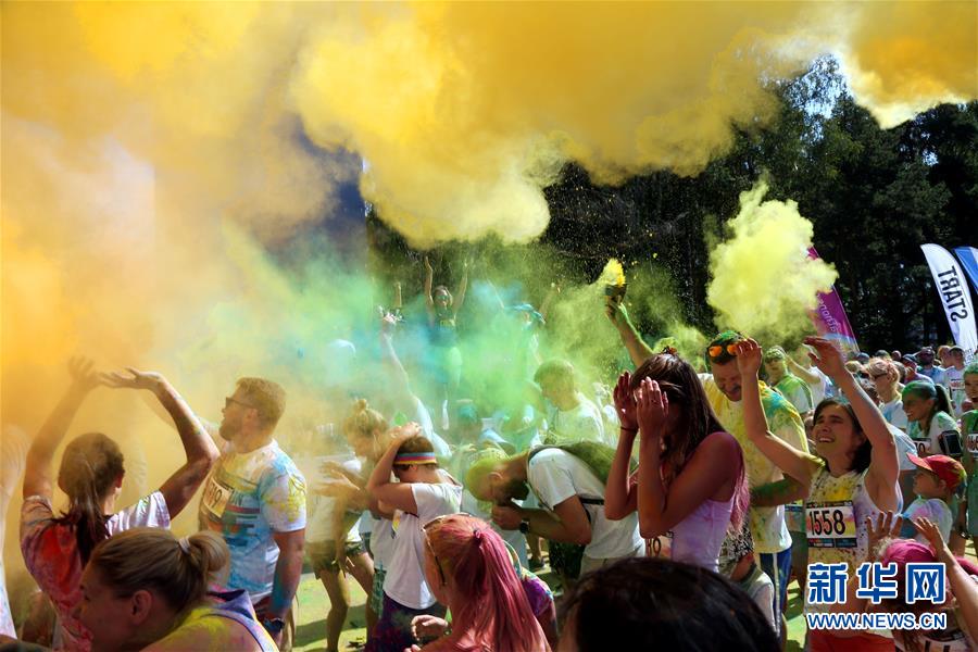 8月16日,人们在拉脱维亚海滨城市尤尔马拉参加色彩节活动。 当天,色彩节活动在拉脱维亚海滨城市尤尔马拉举办,近2000人参加。拉脱维亚近期放宽了针对新冠疫情的防控限制,允许举行不超过3000人参加的户外活动。 新华社发(艾迪斯摄)