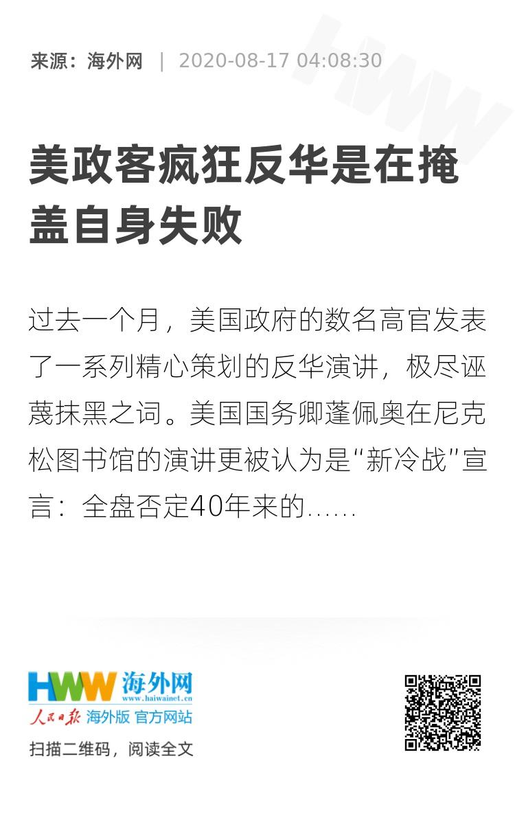 “蓬佩奥们”对中国的攻击是全方位的,所幸,有识之士的眼睛是雪亮的。