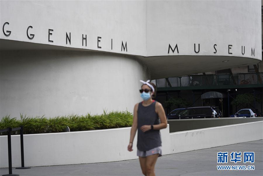 8月18日,行人从暂时关闭的美国纽约古根海姆博物馆外走过。 美国纽约州州长科莫近日表示,纽约市的博物馆可以在8月24日后按照防疫要求重新开放。 新华社记者 王迎 摄