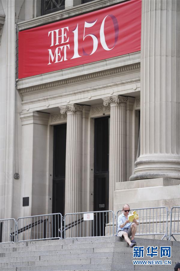 8月18日,一名男子在暂时关闭的美国纽约大都会博物馆外的台阶上看书。 美国纽约州州长科莫近日表示,纽约市的博物馆可以在8月24日后按照防疫要求重新开放。 新华社记者 王迎 摄