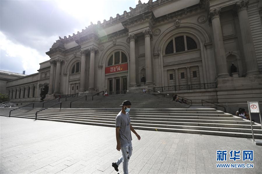 8月18日,行人从暂时关闭的美国纽约大都会博物馆外走过。 美国纽约州州长科莫近日表示,纽约市的博物馆可以在8月24日后按照防疫要求重新开放。 新华社记者 王迎 摄