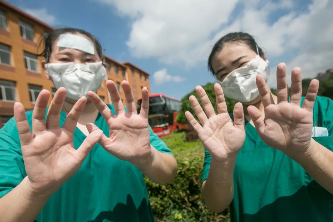 △中国工程院院士、国家卫健委高级别专家组成员李兰娟脱下口罩后,脸上留下压痕。